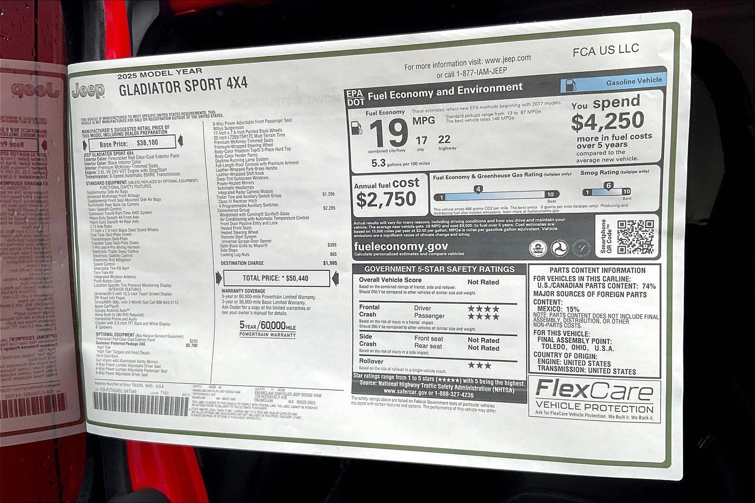 Firecracker Red Clearcoat 2025 Jeep Gladiator High Tide 4WD 8-Speed Automatic 3.6L V6 24V VVT **DRIVE A LITTLE...SAVE A LOT**. Price includes: $1000 - 2025 West BC Retail Bonus Cash. Exp. 02/02/2026 $2250 - 2025 National Retail Bonus Cash . Exp. 02/02/2026