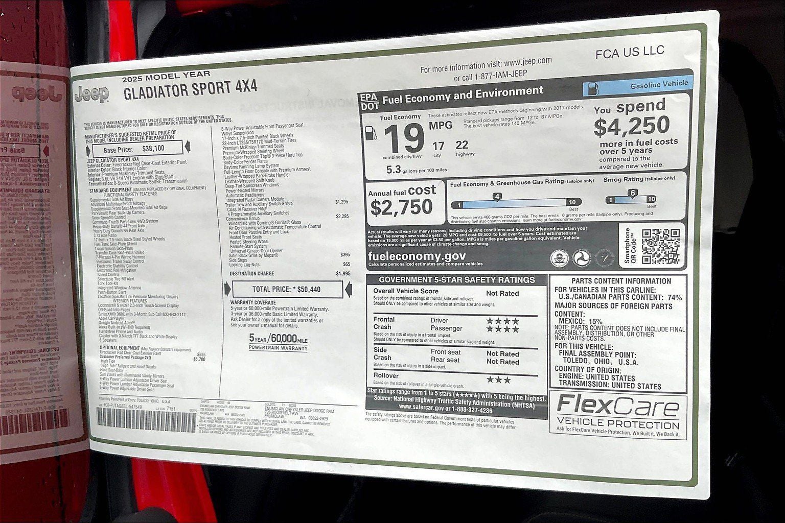 Firecracker Red Clearcoat 2025 Jeep Gladiator High Tide 4WD 8-Speed Automatic 3.6L V6 24V VVT **DRIVE A LITTLE...SAVE A LOT**. Price includes: $1000 - 2025 West BC Bonus Cash . Exp. 03/02/2026 $2250 - 2025 National Retail Bonus Cash . Exp. 03/02/2026