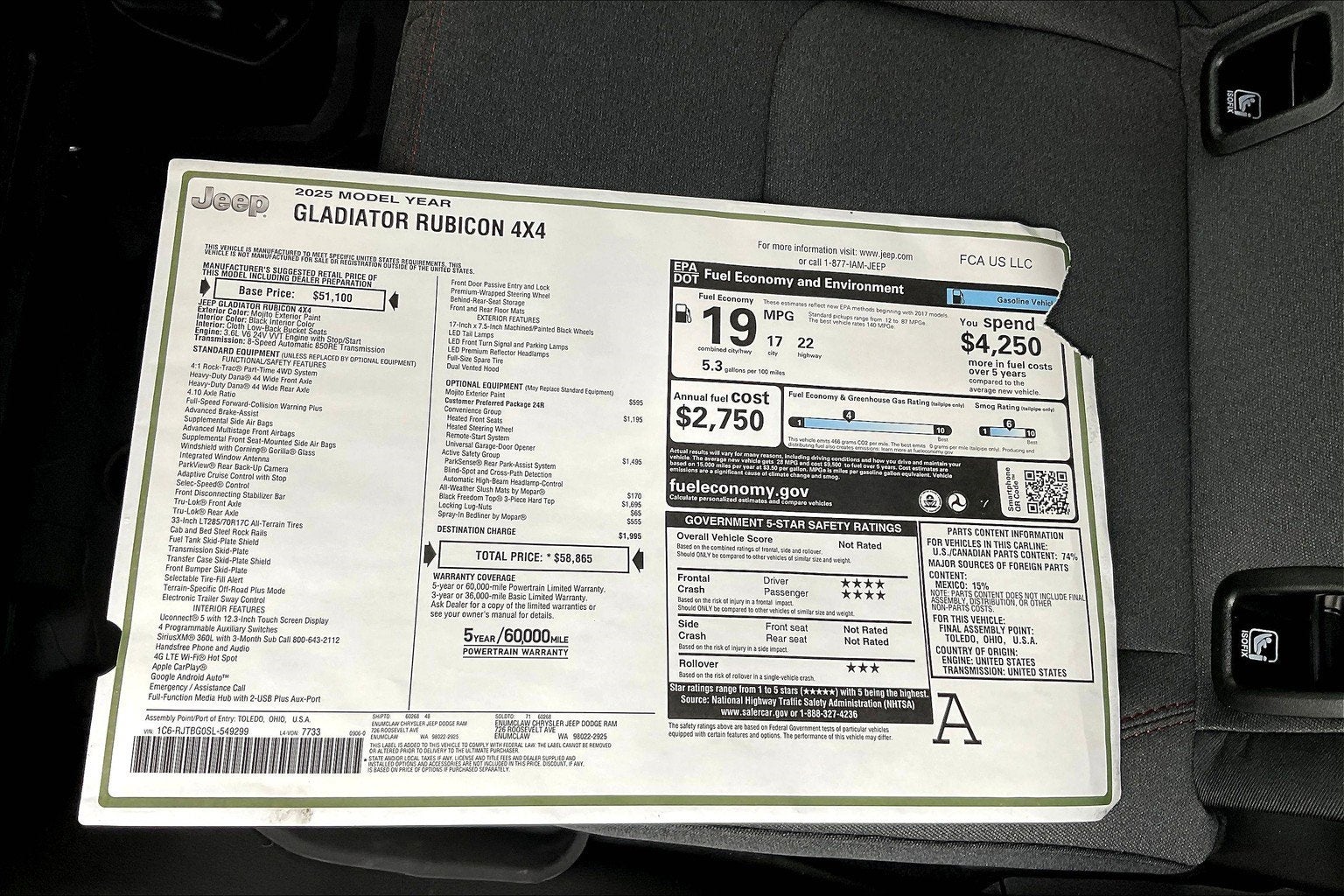 Mojito 2025 Jeep Gladiator Rubicon 4WD 8-Speed Automatic 3.6L V6 24V VVT **DRIVE A LITTLE...SAVE A LOT**. Price includes: $5500 - 2025 National Retail Bonus Cash . Exp. 02/02/2026