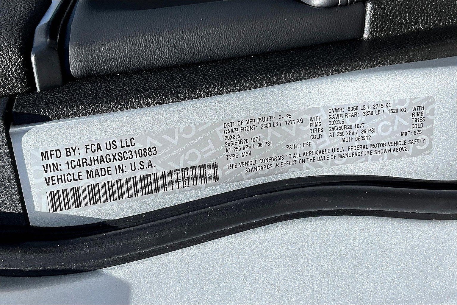 VIN: 1C4RJHAGXSC310883