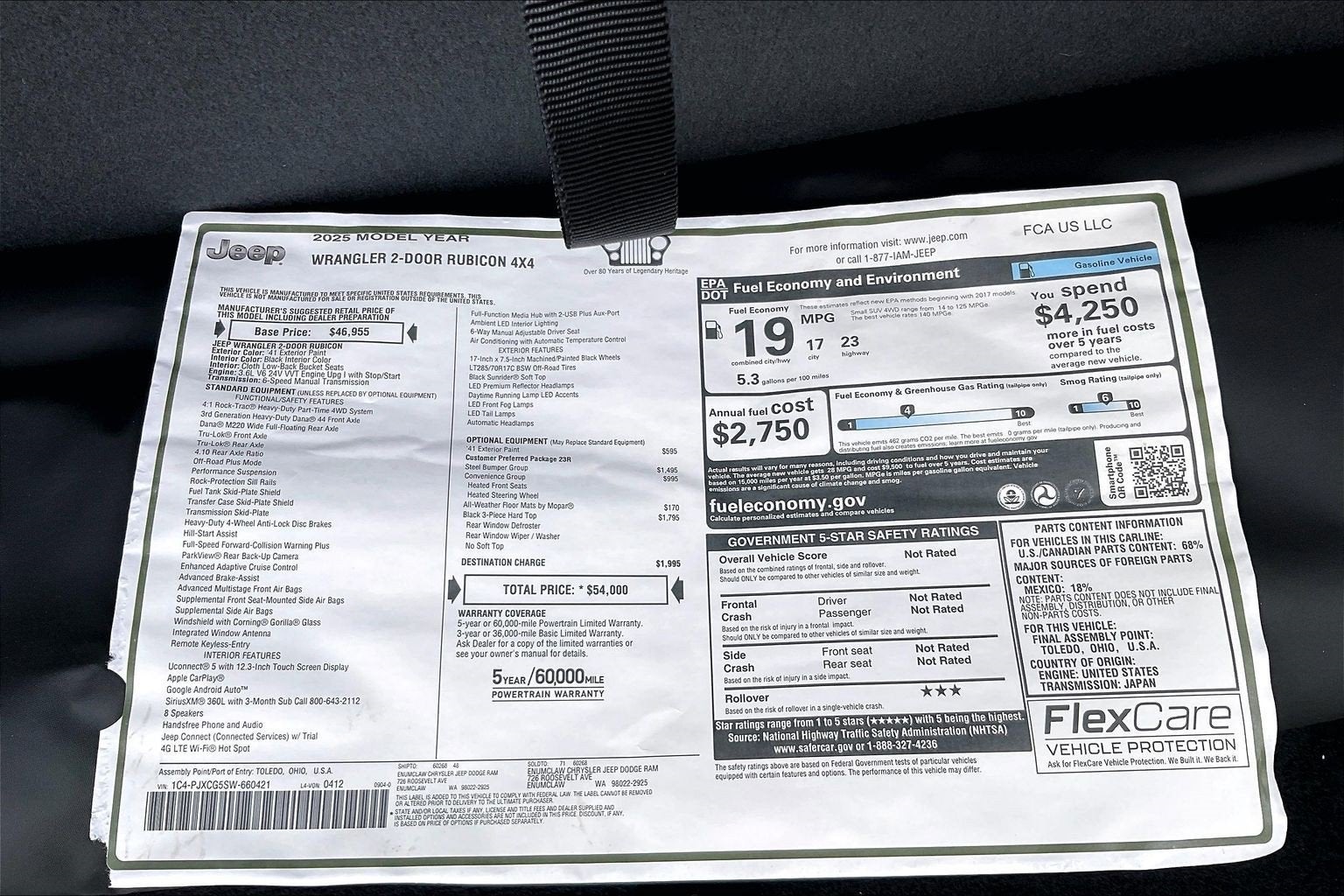 41 2025 Jeep Wrangler Rubicon 4WD 6-Speed Manual 3.6L V6 24V VVT **DRIVE A LITTLE...SAVE A LOT**. Price includes: $2000 - 2025 National Retail Bonus Cash . Exp. 02/02/2026