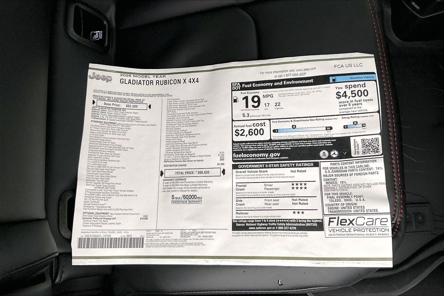 Anvil Clearcoat 2026 Jeep Gladiator Rubicon 4WD 8-Speed Automatic 3.6L V6 24V VVT **DRIVE A LITTLE...SAVE A LOT**. Price includes: $1500 - 2026 National Select Inventory Bonus Cash. Exp. 01/04/2027