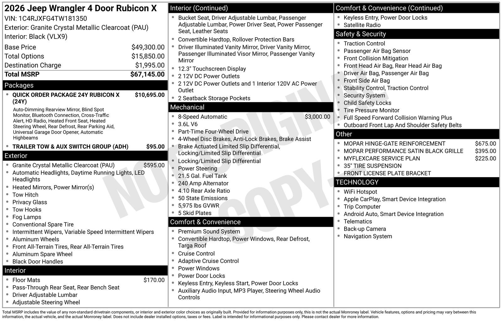 Granite Crystal Metallic Clearcoat 2026 Jeep Wrangler Rubicon X 4WD 8-Speed Automatic 3.6L V6 24V VVT **DRIVE A LITTLE...SAVE A LOT**.