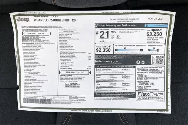 Black Clearcoat 2026 Jeep Wrangler Sport 4WD 8-Speed Automatic 2.0L I4 DOHC **DRIVE A LITTLE...SAVE A LOT**.