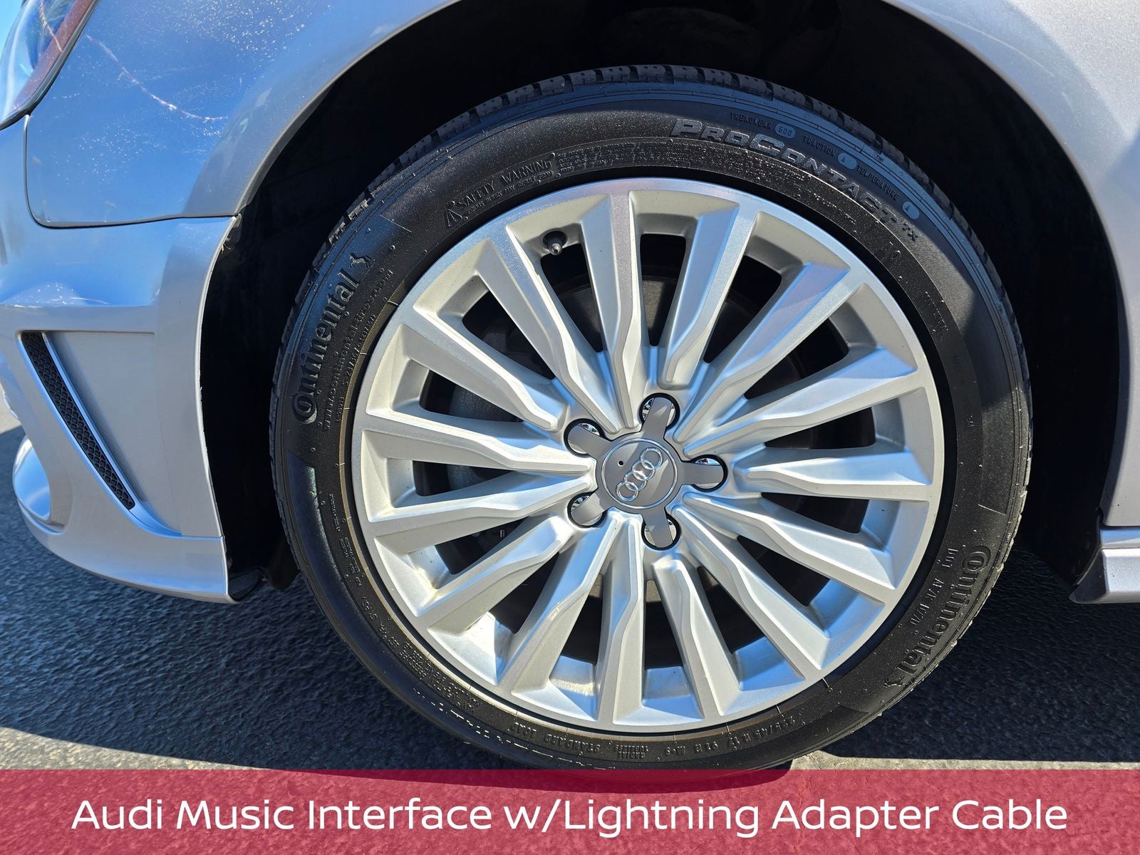10 Speakers, 17 Wheel Package, Audi Connect w/Online Services, Audi MMI Navigation Plus, Audi Music Interface w/Lightning Adapter Cable, Heated door mirrors, High intensity discharge headlights: Xenon plus, Power door mirrors, Power moonroof, Radio: Audi Concert w/AM/FM/CD/SAT, Radio: Audi MMI Navigation Plus w/MMI Touch, Rear fog lights, Remote keyless entry, Security system, Speed control, Speed-sensing steering, Steering wheel mounted audio controls, Telescoping steering wheel, Tilt steering wheel, Wheels: 7.5 x 17 15-Spoke Turbine-design.