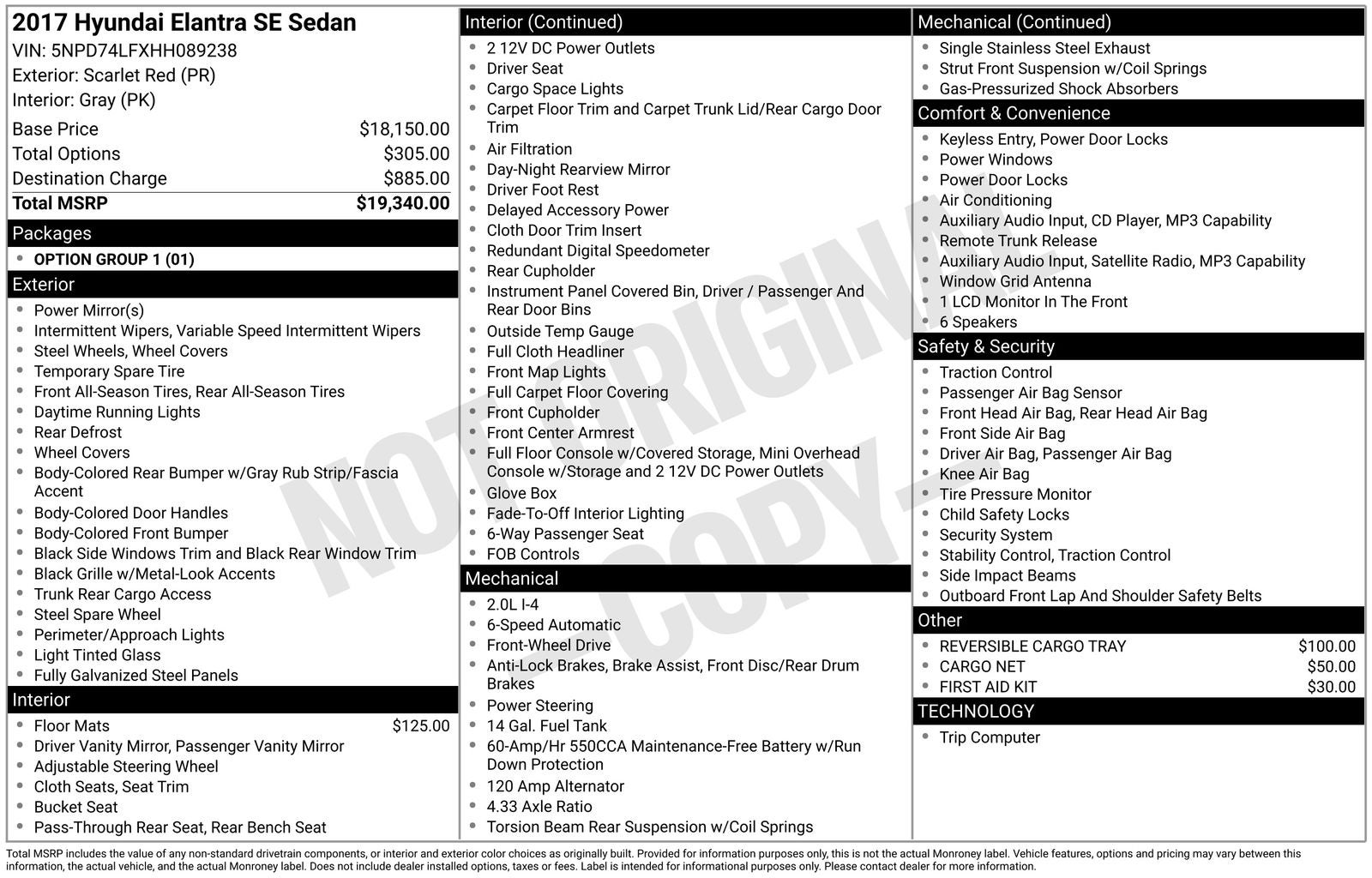 CARFAX One-Owner. 6 Speakers, Air Conditioning, AM/FM radio: SiriusXM, Brake assist, Delay-off headlights, Electronic Stability Control, Front Bucket Seats, Option Group 1, Panic alarm, Power door mirrors, Radio: AM/FM/SiriusXM/CD/MP3 Audio System, Security system, Tachometer, Telescoping steering wheel, Tilt steering wheel, Trip computer, Variably intermittent wipers.