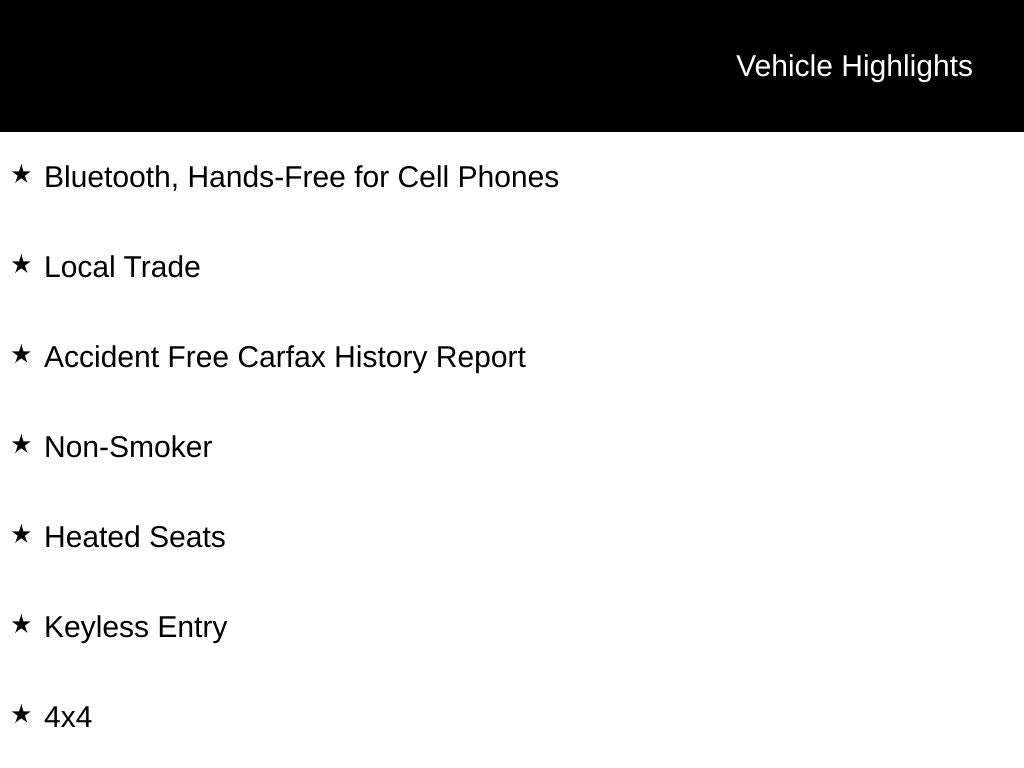 Clean CARFAX. Bluetooth®, Hands-Free for Cell Phones, Local Trade, Accident Free Carfax History Report, Non-Smoker, Heated Seats, Keyless Entry, 4x4.