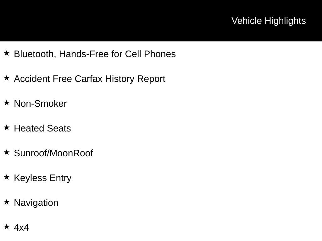 Recent Arrival! Clean CARFAX. Bluetooth®, Hands-Free for Cell Phones, Accident Free Carfax History Report, Non-Smoker, Heated Seats, Sunroof/MoonRoof, Keyless Entry, Navigation, 4x4.