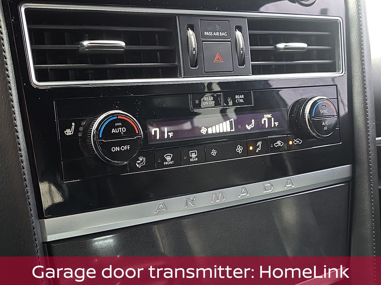 Clean CARFAX. This 2021 Nissan Armada SL delivers full-size SUV power and premium comfort in one commanding package. Equipped with a robust 5.6L V8 engine, it offers confident performance whether you're cruising the highway or towing with ease. Inside, enjoy leather-appointed seating, tri-zone climate control, a large touchscreen with Apple CarPlay/Android Auto, navigation, and a premium Bose audio system. The SL trim also adds a power liftgate, heated front seats, advanced safety features, and striking 20 alloy wheels. With three-row seating and impressive cargo space, this Armada combines luxury, capability, and family-friendly versatility—ready for any adventure., 13 Speakers, 20 Painted Alloy Wheels, Auto High-beam Headlights, Automatic temperature control, Delay-off headlights, Fully automatic headlights, Garage door transmitter: HomeLink, Heated Front Bucket Seats, Heated front seats, Leather Seat Trim, Power Liftgate, Power moonroof, Power passenger seat, Radio: NissanConnect w/SiriusXM, Reclining 3rd row seat, Remote keyless entry, Security system, Speed control, Steering wheel memory, Steering wheel mounted audio controls, Telescoping steering wheel, Tilt steering wheel, Trip computer, Turn signal indicator mirrors.