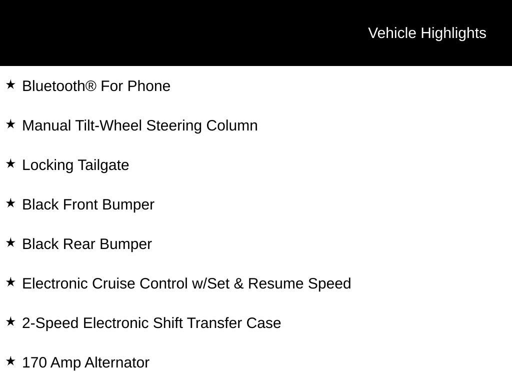 - Transfer case, two-speed electronic shift with push button controls (Requires 4WD models.)