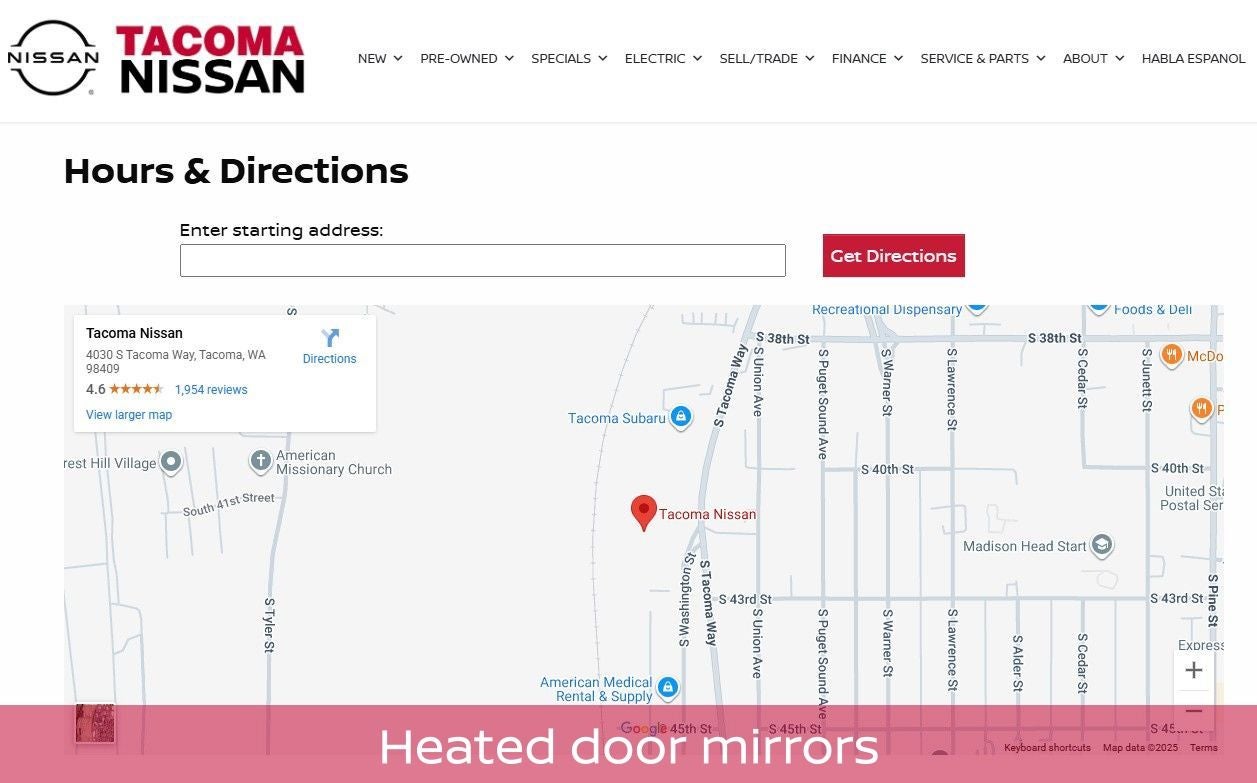 We specialize in affordable vehicles, most of which are certified with an excellent selection for you to choose from. We provide great service, great prices and a hassle free sales approach as proven by our excellent customer ratings, 4.4 stars Google, 4.4 stars on Cars.com, Facebook 4.7 stars and Yelp 3.4 stars. We are non-pushy, genuine and honest. Tacoma Nissan, is a locally owned and operated dealership serving Tacoma, Lakewood, Parkland, Fife, Milton, Puyallup, Gig Harbor, Federal Way, Sumner, Spanaway, Lacey, Olympia, Enumclaw, Auburn, Nissan buyers and the surrounding areas of Washington. Our friendly staff is funny, approachable, and very knowledgeable. We are trained to serve you and we’ll bend over backwards to help you find the right financing and appropriate vehicle that meets your needs.