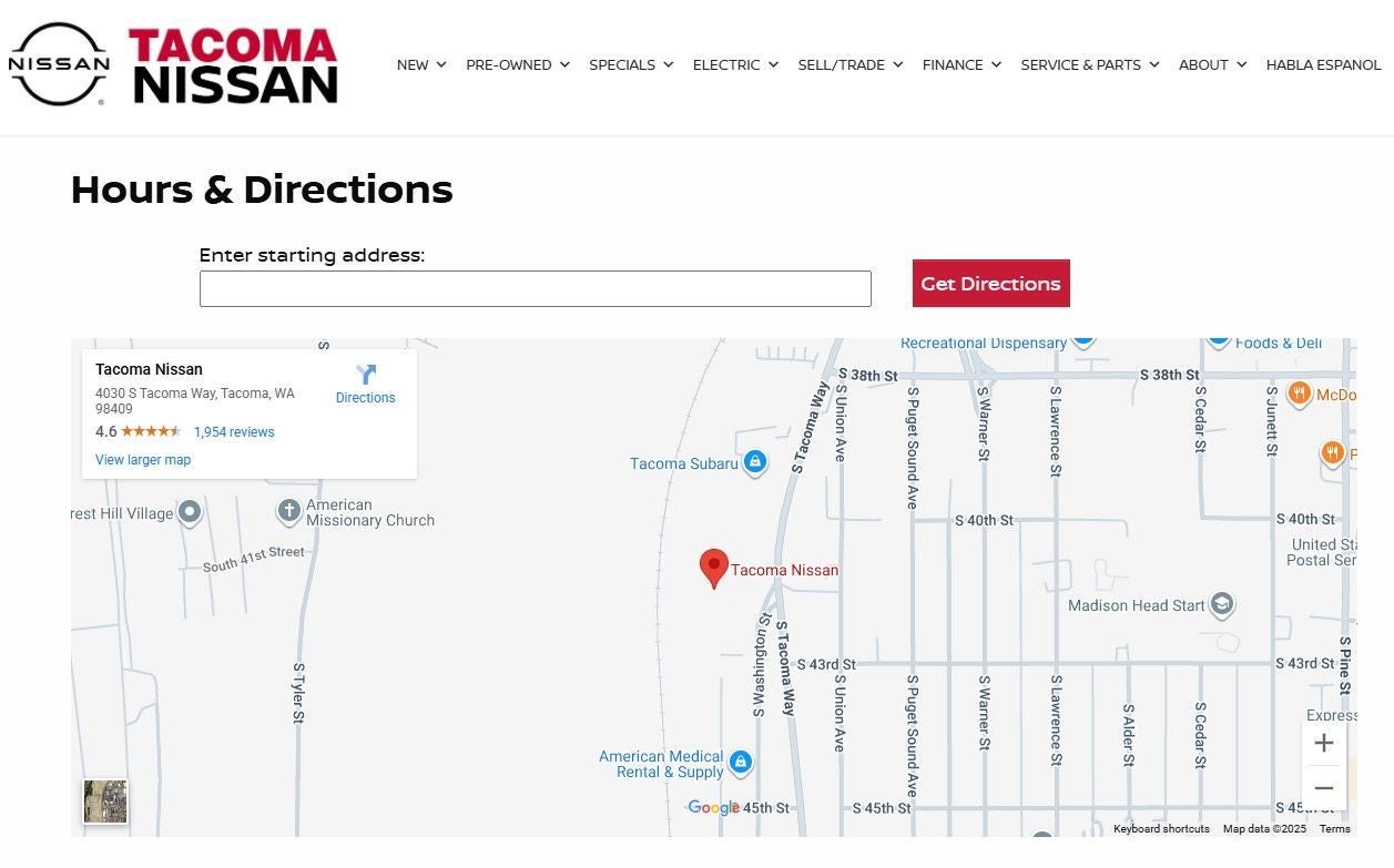 We specialize in affordable vehicles, most of which are certified with an excellent selection for you to choose from. We provide great service, great prices and a hassle free sales approach as proven by our excellent customer ratings, 4.4 stars Google, 4.4 stars on Cars.com, Facebook 4.7 stars and Yelp 3.4 stars. We are non-pushy, genuine and honest. Tacoma Nissan, is a locally owned and operated dealership serving Tacoma, Lakewood, Parkland, Fife, Milton, Puyallup, Gig Harbor, Federal Way, Sumner, Spanaway, Lacey, Olympia, Enumclaw, Auburn, Nissan buyers and the surrounding areas of Washington. Our friendly staff is funny, approachable, and very knowledgeable. We are trained to serve you and we’ll bend over backwards to help you find the right financing and appropriate vehicle that meets your needs.